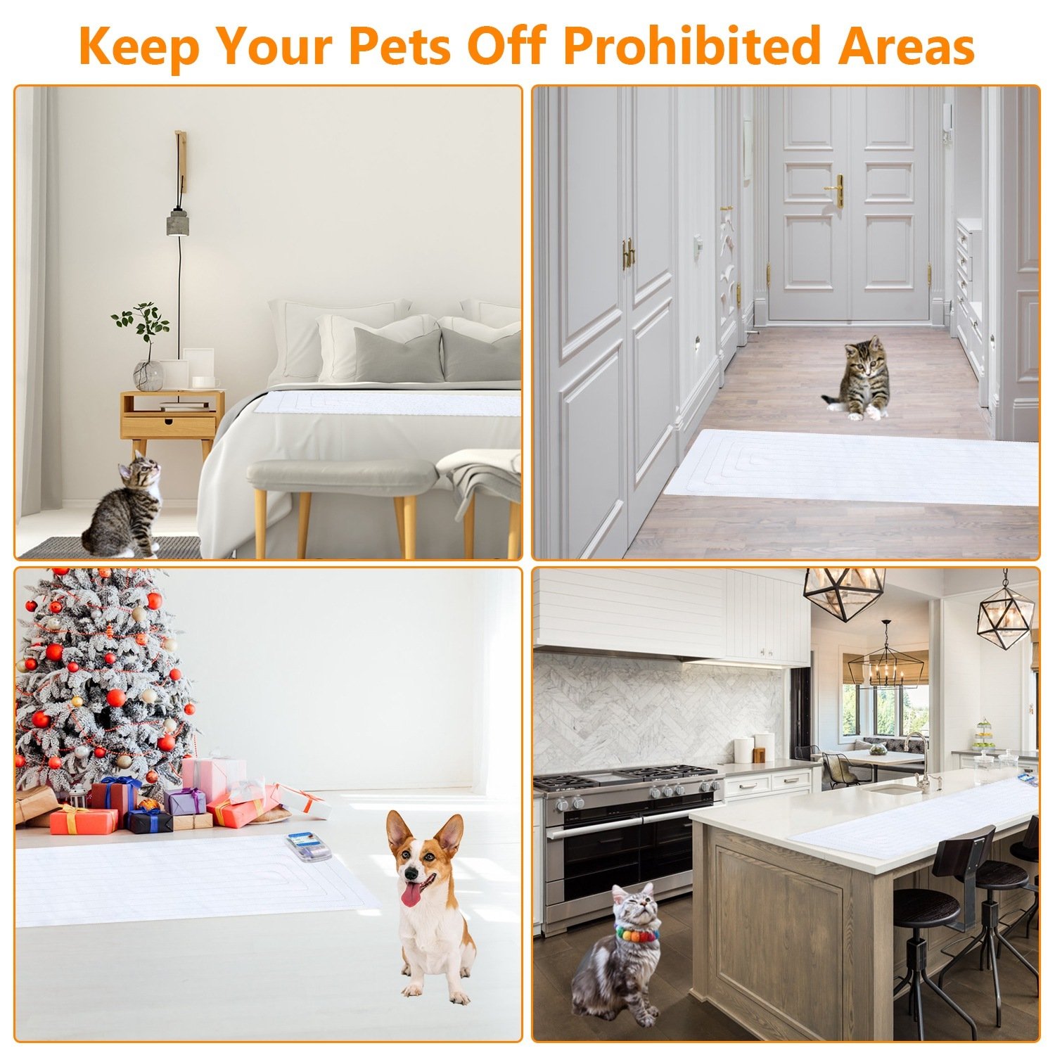 • *Great Value To Protect Home*: This sensitive pet training mat can keep dogs and cats away from countertop,couch,sofa,bed,table,baby activity area and other areas that you want to keep pet-free. Once detecting cats,dogs,or other similar sized pets,a harmless and low-power electronic pulse will runs across the surface of the mat to send away pets safely.